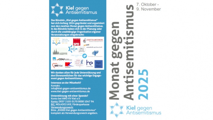 06.10.2025 Monat gegen Antisemitismus Auch dieses Jahr hat das 2024 gegründete Bündnis „Kiel gegen Antisemitismus“ gemeinsam den "Monat gegen Antisemitismus" vorbereitet. Neben der...