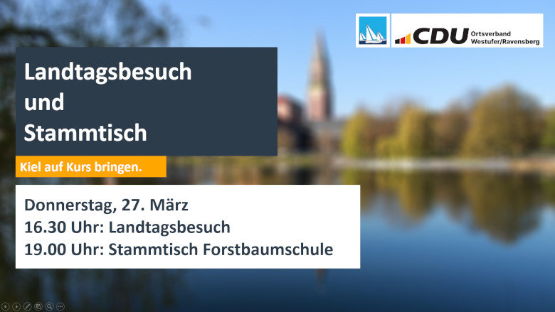 wir möchten Sie/Euch herzlich zu einem Besuch in den Schleswig- Holsteinischen Landtag am Donnerstag, den 27.03.2025 ab 16.30 Uhr einladen.