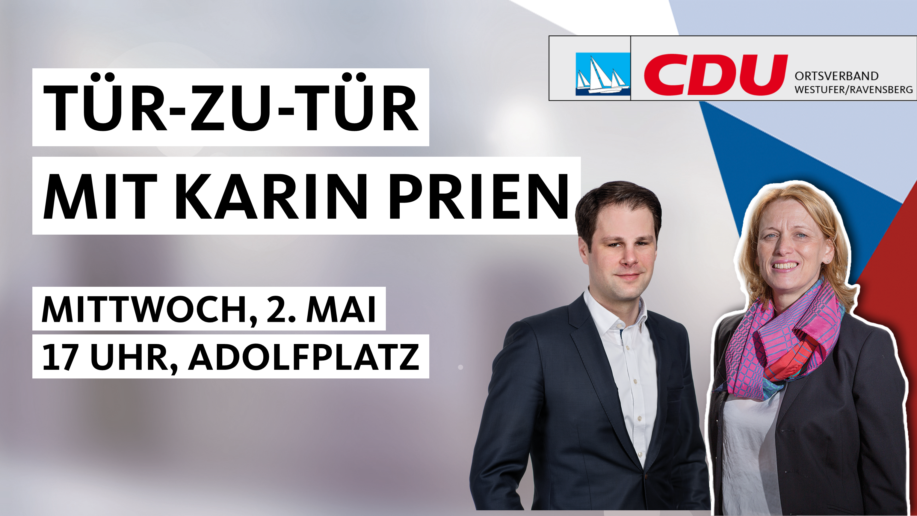 Wir machen im Wahlkreis von Dr. Frederik Heinz eine große Tür-zu-Tür-Aktion mit unserer Bildungsministerin Karin Prien und der Jungen Union.